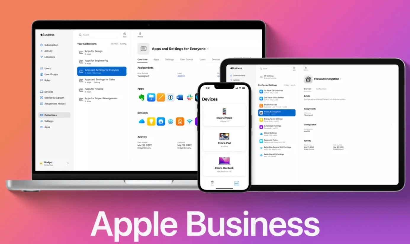 Главная новость — отмена абонентской платы за функции Apple Business Essentials. Теперь базовый функционал мобильного управления устройствами будет предоставляться бесплатно более чем в 200 странах. Это включает в себя механизм «Blueprints» (чертежи), который позволяет настроить автоматическую конфигурацию iPhone, iPad и Mac сразу «из коробки» (zero-touch deployment).